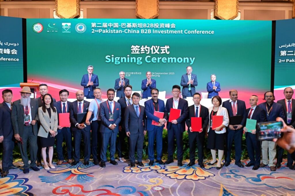 بیجنگ: پاکستان اور چین نے باہمی اقتصادی تعاون کو نئی بلندیوں تک لے جانے کے لیے 8 ارب 50 کروڑ ڈالر مالیت کے مشترکہ منصوبوں اور مفاہمتی یادداشتوں (MoUs) پر دستخط کیے ہیں۔ ان معاہدوں میں زراعت، الیکٹرک وہیکلز، شمسی توانائی، صحت، کیمیکل و پیٹرو کیمیکل، آئرن و اسٹیل، آئی ٹی، مصنوعی ذہانت، معدنیات، کان کنی اور ٹیکسٹائل سمیت مختلف اہم شعبے شامل ہیں۔ یہ معاہدے وزیراعظم شہباز شریف کے دورہ چین کے دوران بیجنگ میں ہونے والی دوسری پاک-چین بی ٹو بی سرمایہ کاری کانفرنس کے موقع پر طے پائے۔