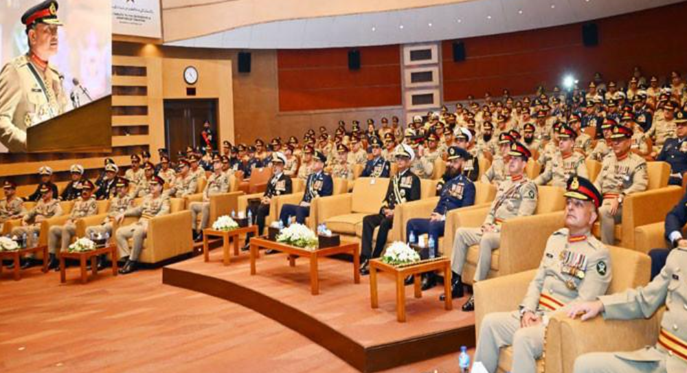آئی ایس پی آر کے مطابق پیر کے روز تینوں مسلح افواج کے افسران سے خطاب میں فیلڈ مارشل عاصم منیر نے دوٹوک مؤقف اپناتے ہوئے کہا کہ پاکستان ایک امن پسند ملک ہے، تاہم کسی بھی قوت کو پاکستان کی خودمختاری، علاقائی سالمیت اور قومی عزم کو چیلنج کرنے کی اجازت نہیں دی جائے گی۔